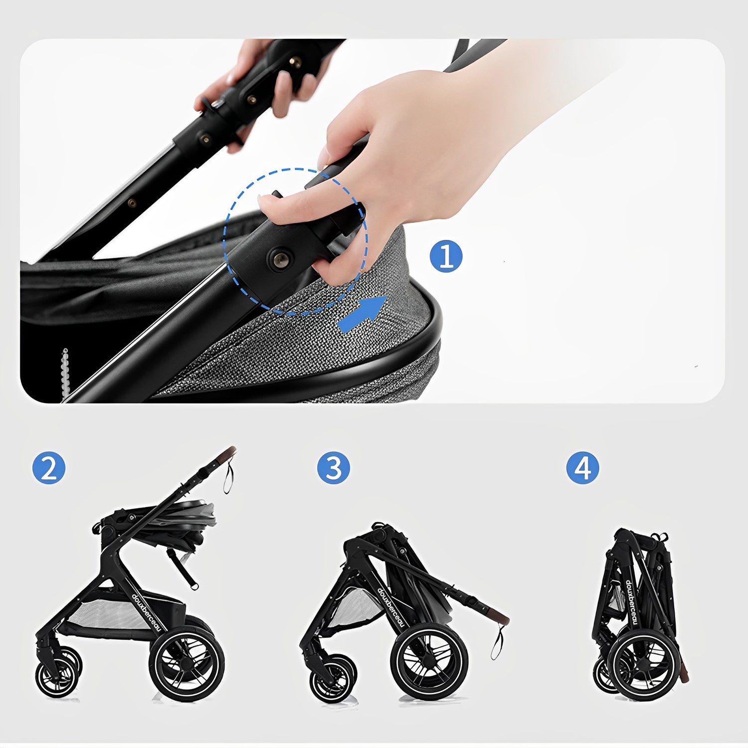 Absolument ! Nous avons conçu cette poussette dans le but de faciliter la vie des parents. Elle se plie d’une main, en un clin d’œil et se transporte sans effort grâce à son poids léger et sa poignée de transport pratique.